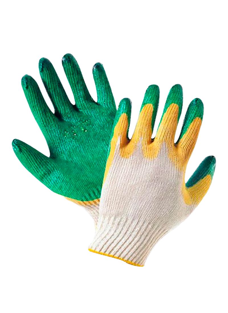Усиленная латексом трикотажная перчатка для более интенсивного режима износа. Полное покрытие слоем латекса ладонной части и кончиков пальцев значительно повышает сцепные свойства. Основной цвет зеленый.