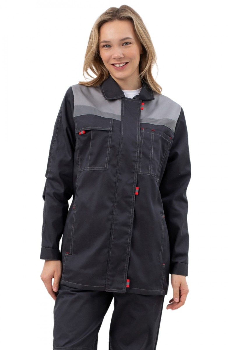Костюм с лентой ФИО что позволяет идентифицировать костюм работника. Усилительные накладки для защиты костюма от истирания: в зоне локтя и колена на брюках.