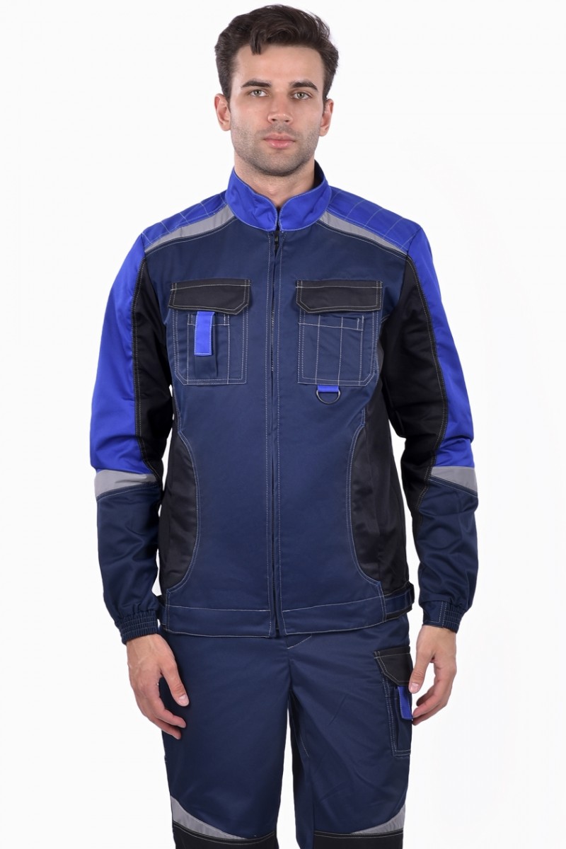 ➠ Куртка прямого силуэта, застежка на молнию, воротник стойка. Пояс притачной. Карманы на линии груди накладные, комбинированные с малыми карманами с разделителями. На нижней части полочки два прорезных кармана.