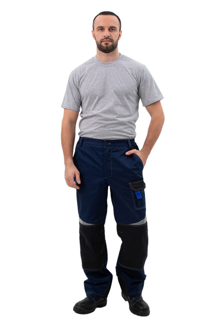 ➠ Брюки: на притачном поясе, гульфик с застежкой на «молнию», боковые карманы с отрезным бочком. Колени усилены накладками, заложены по 2 вытачки. Один карман над левым наколенником. По шву наколенников косые, фигурные вставки СОП.