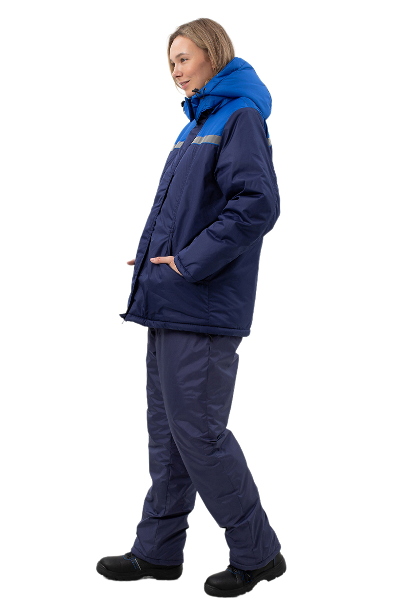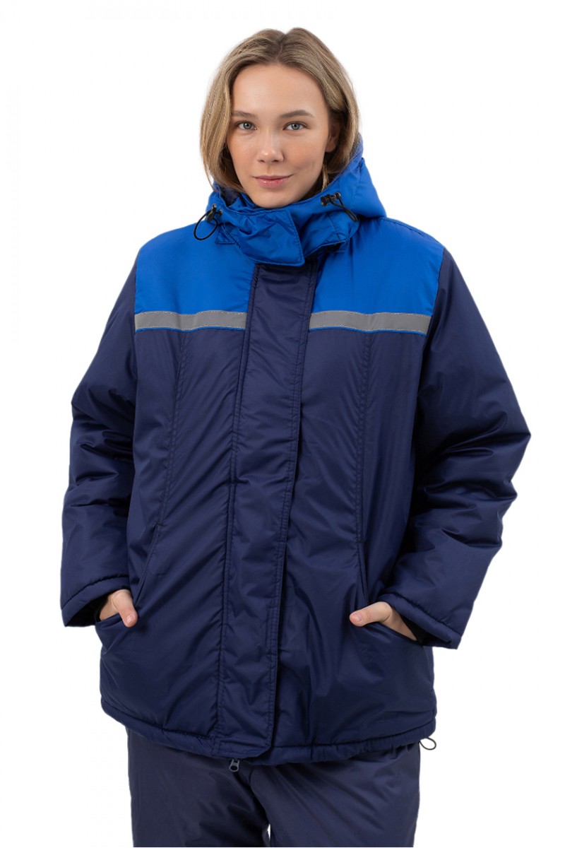 Куртка утепленная с центральной застежкой на тесьму «молния» и внешним ветрозащитным клапаном, застегивающимся на липучку. Воротник стойка с флисом. Полочки с боковыми нижними карманами в рельефных швах сложной конфигурации. Внутренний карман. Рукава с трикотажными манжетами. Внизу куртки кулиса. СВ кант расположен в швах притачивания кокеток.