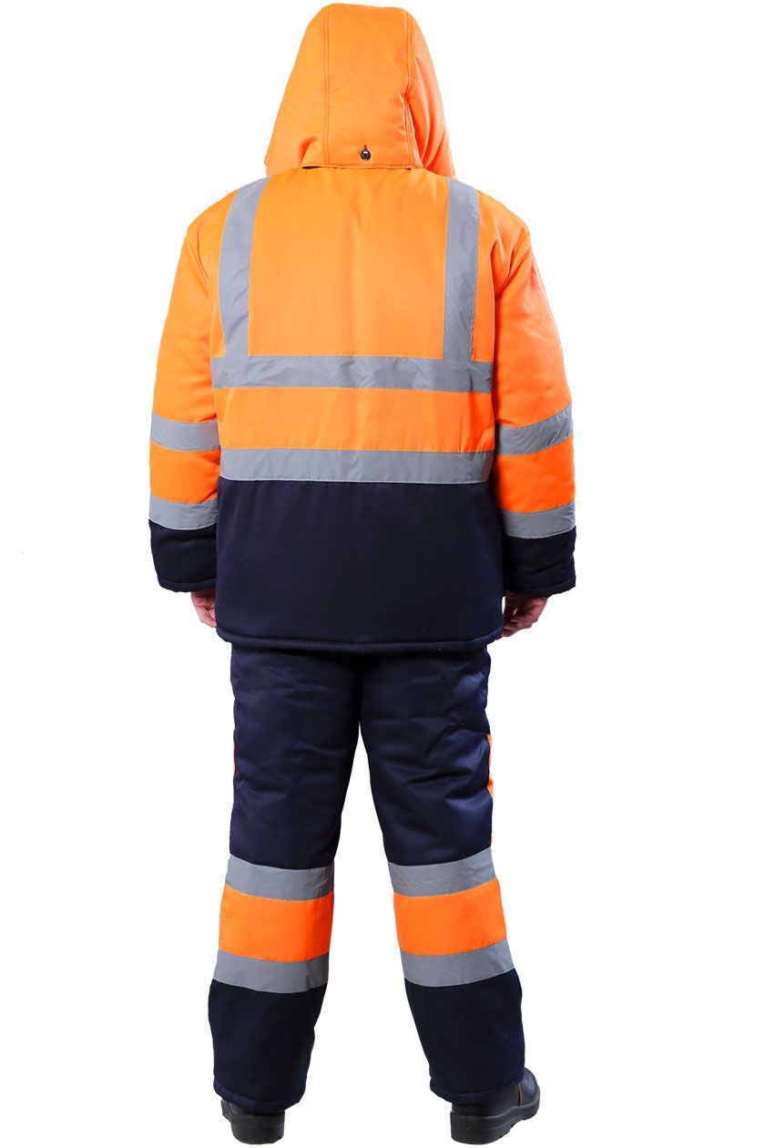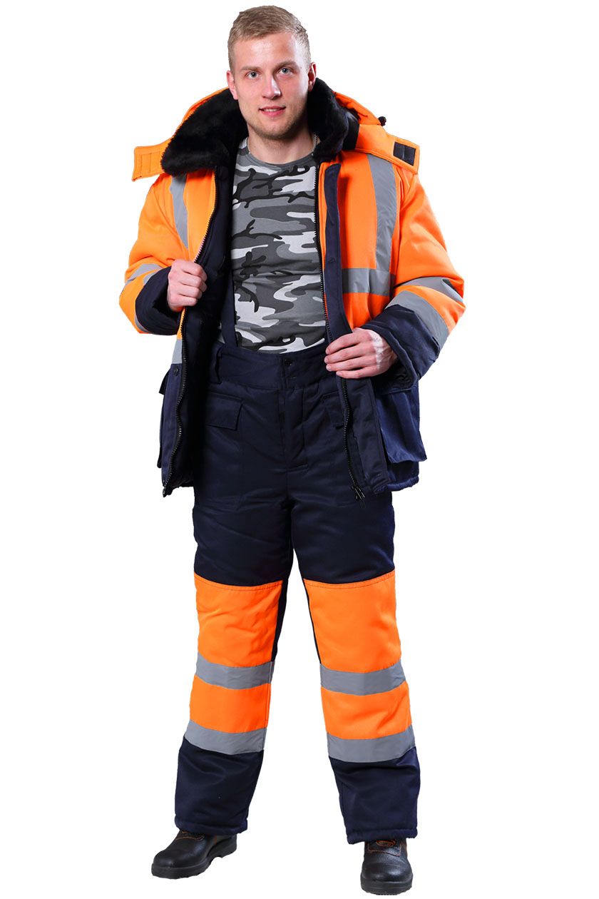 ➠ Брюки утеплённые с притачным утеплённым расширенным поясом, с застёжкой гульфика пуговицы, с бретелями. На передних половинках расположены боковые накладные карманы с клапанами. По линии колен выполнены наколенники из контрастной ткани с двумя рядами СОП 50 мм.